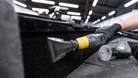 Limpeza profunda em bancos de tecido ou couro, eliminando odores e renovando a aparência.